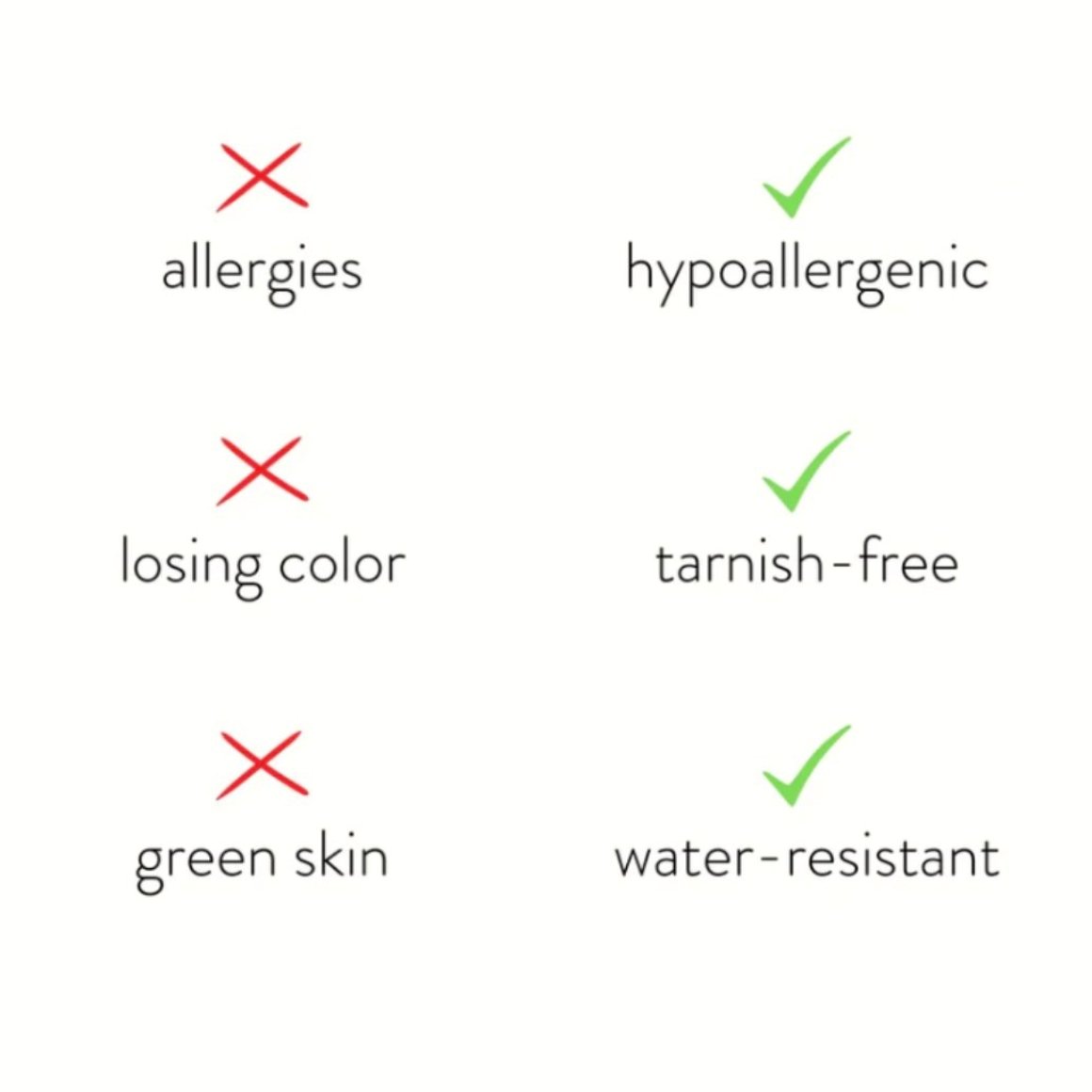 Hecho de acero inoxidable resistente al agua, nunca más tendrás que preocuparte por el desvanecimiento o la oxidación de la joyería.